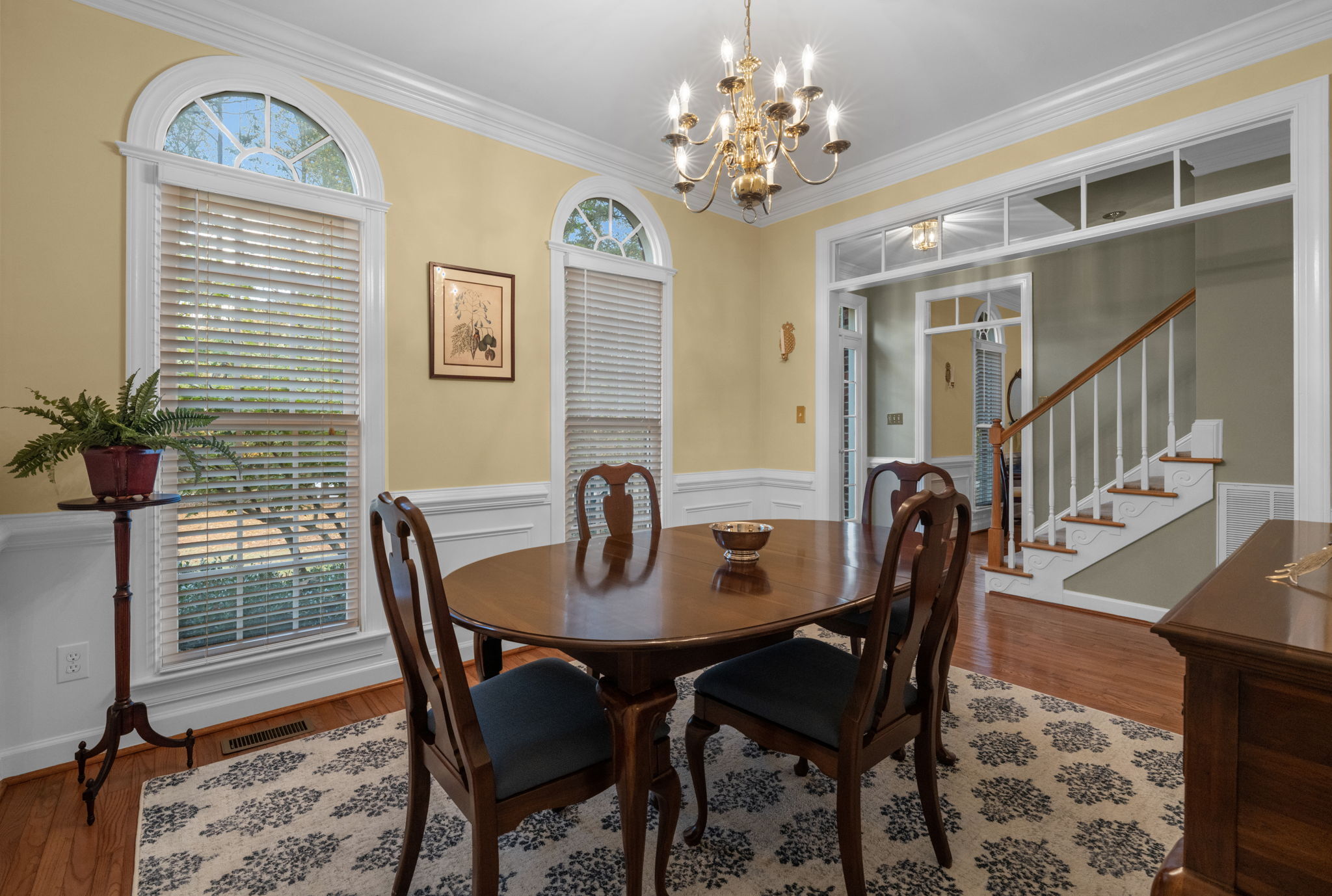 Experience the perfect balance of comfort and sophistication in this beautifully designed home, where modern convenience meets timeless style. Every detail has been thoughtfully crafted to support both relaxed everyday living and effortless entertaining. At the heart of the home, the kitchen features stainless steel appliances, a center island, and plenty of space to inspire your culinary creativity. Enjoy peaceful mornings in the bright breakfast area with easy access to your private deck and patio—ideal for al fresco dining or quiet moments outdoors. The formal dining room, adorned with wainscoting and crown molding, sets the stage for memorable gatherings, while the adjacent living room or home office offers a versatile space highlighted by elegant transom doorways. The primary suite provides a serene retreat, complete with a walk-in closet and a comfortable area for unwinding. Gleaming hardwood floors flow throughout much of the main level, bringing warmth and character to every space. A spacious, unfinished attic offers endless potential for customization. Perfectly situated near I-540, the new Publix shopping center, and Buffaloe Road Athletic Park & Aquatic Center, this home captures the essence of refined, modern living.